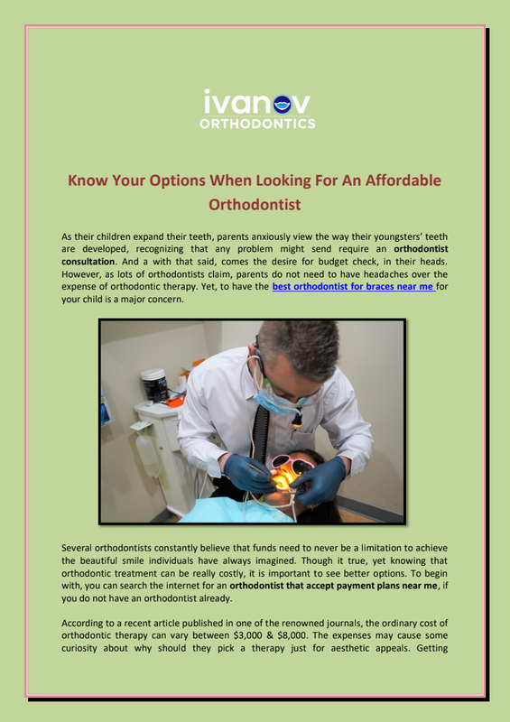 Several orthodontists constantly believe that funds need to never be a limitation to achieve the beautiful smile individuals have always imagined. Though it true, yet knowing that orthodontic treatment can be really costly, it is important to see better options. To begin with, you can search the internet for an orthodontist that accept payment plans near me, if you do not have an orthodontist already.