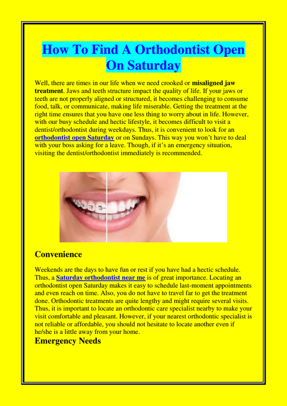 Start the search on the internet for ‘Saturday orthodontist near me’. The search engines like Google help serve the best results by identifying your IP address and thus offer you relevant & suitable outcomes.