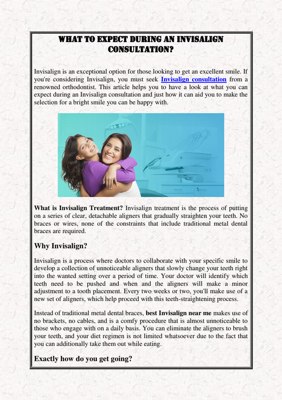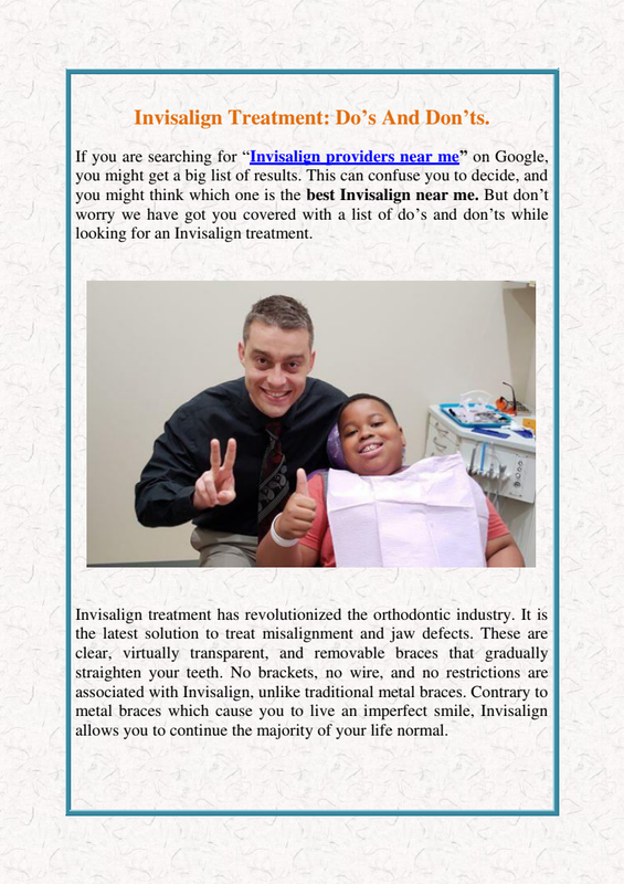 You ought to do your research long prior to you make a visit with the best Invisalign orthodontist near me to get your teeth aligned. By doing this, you will certainly have time to make your choice, and never really feel hurried. Doing this research study ought to permit you to feel great about the office you ultimately select for the therapy.