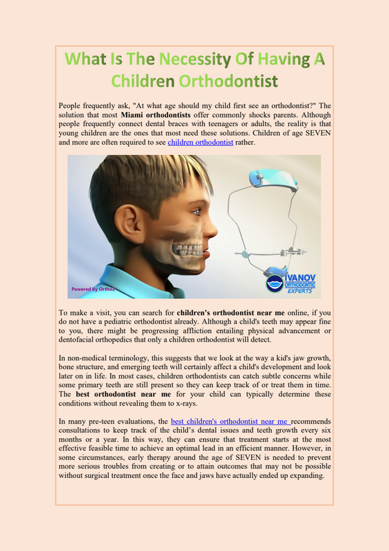 To make a visit, you can search for children's orthodontist near me online, if you do not have a pediatric orthodontist already. Although a child's teeth may appear fine to you, there might be progressing affliction entailing physical advancement or dentofacial orthopedics that only a children orthodontist will detect.