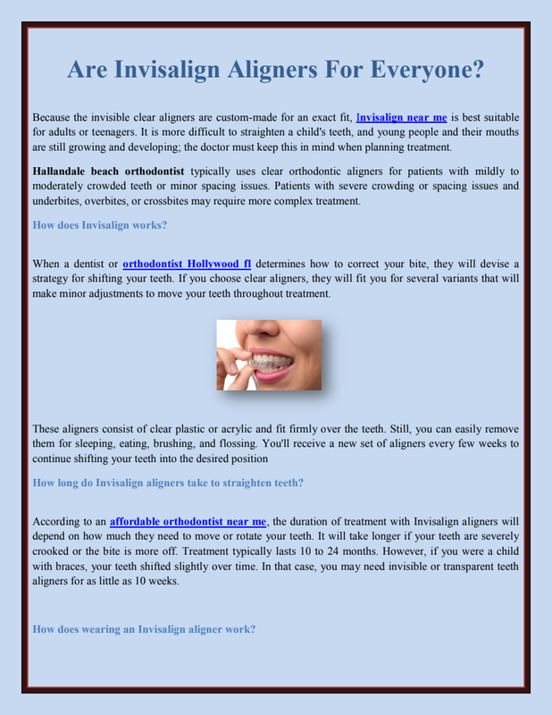 Invisalign are clear aligners that give a straighter look to your teeth. They shift your teeth slowly back to their original position. If you think that only braces are used to correct misalignment, there is now Invisalign to align your teeth. Invisalign will be the best solution for you if you want to avoid braces. You can consult Invisalign North Miami dentist to know more benefits of Invisalign.