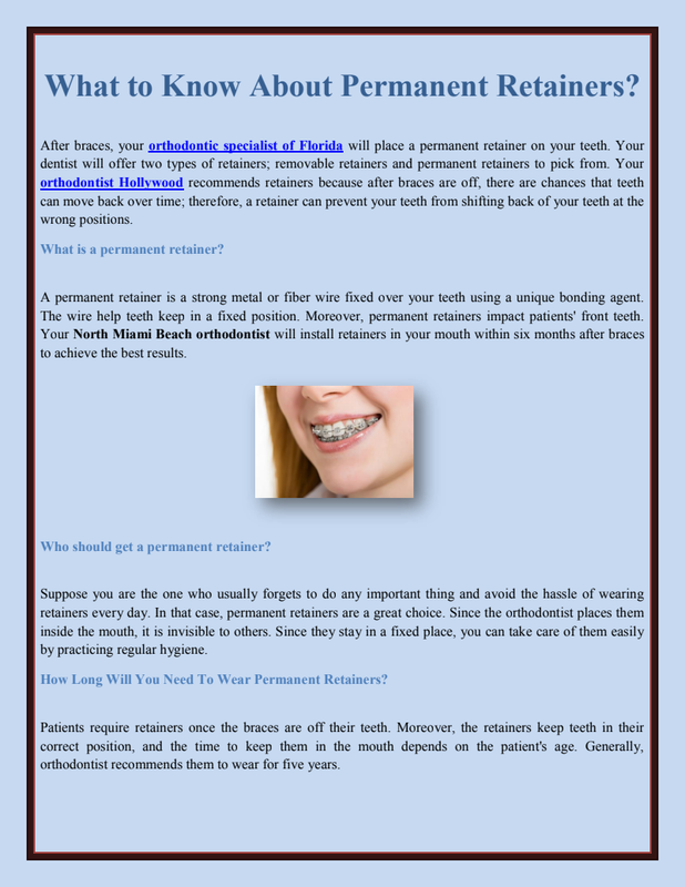 Orthodontist Hollywood often uses a combination of permanent and removable retainers for the best and long-term results. However, some reliable studies show that permanent retainers are becoming popular.